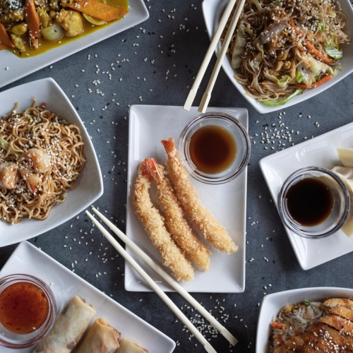Andebryst med soja-hvidløg sauce eller østerssauce* Broccoli, peberfrugt, shiitake svamp, løg og koriander |